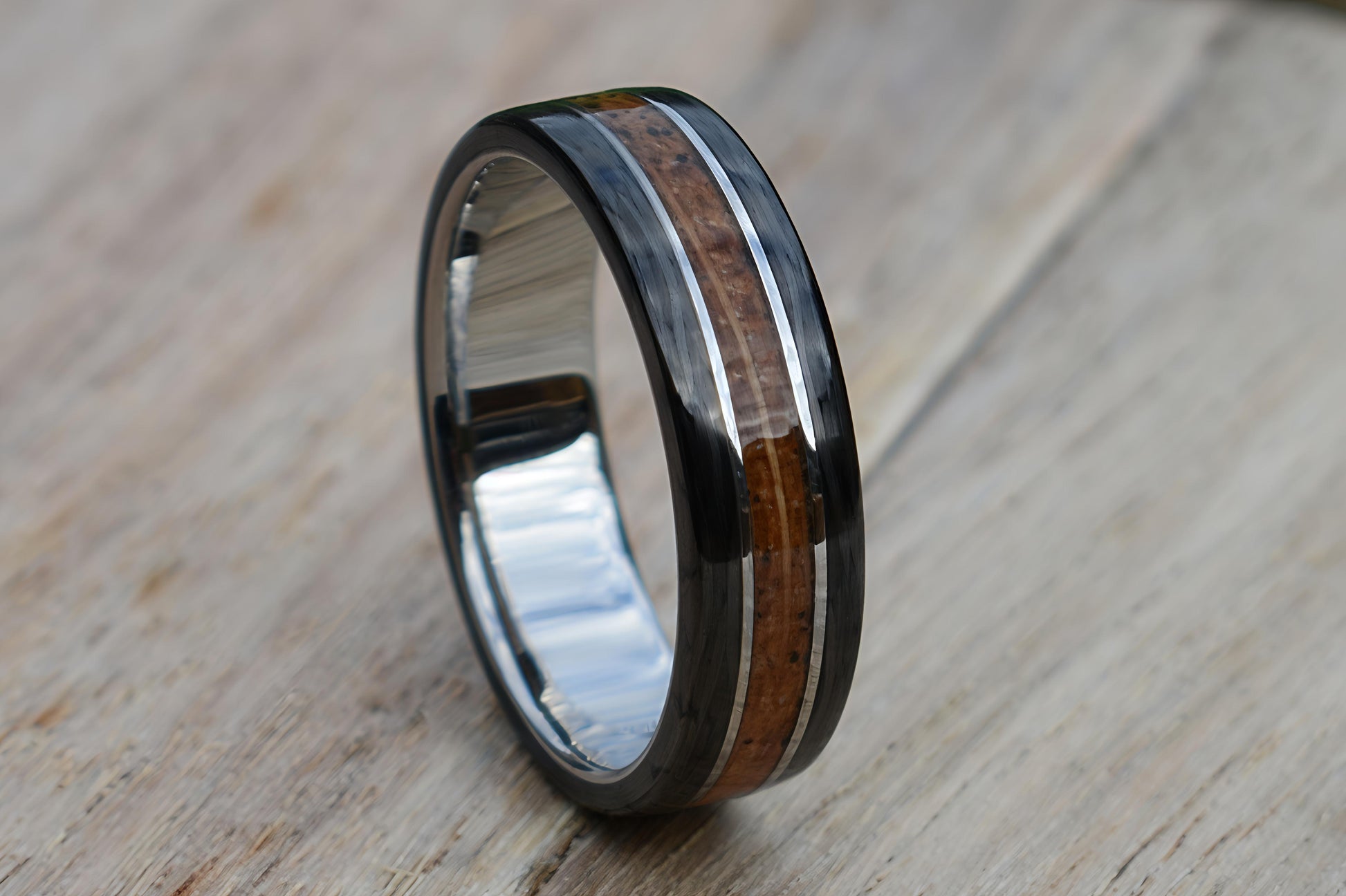The Penderyn Blackline Collection is crafted from reclaimed oak casks once used by Penderyn Distillery to mature award-winning Welsh whisky. Each ring is shaped by hand in Wales, transforming these storied barrels into modern jewellery that carries the spirit and heritage of its origins. More than a ring, each piece is a link to Welsh craft, character, and tradition — designed for those who value authenticity and story.