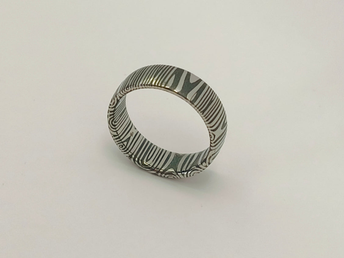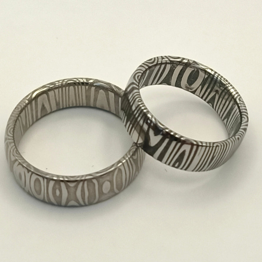 Crafted from premium Damasteel® stainless Damascus, this ring features the elegant Fenja pattern—a fluid, wave-like grain that flows across the surface with natural rhythm. Inspired by the gentle movement of water and wind, each ring carries a unique fingerprint of layered steel, offering subtle sophistication and timeless character.